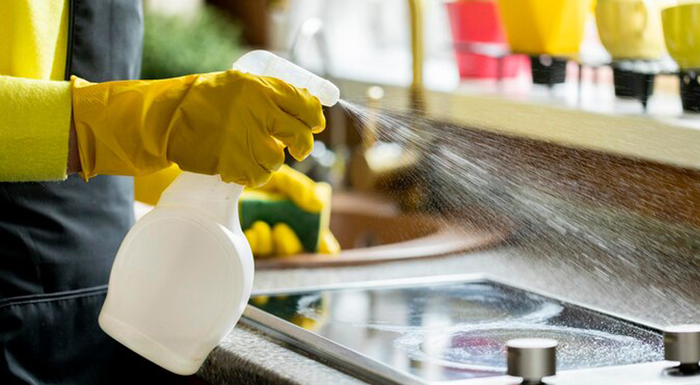 Benchtops, splashbacks, stove tops, sinks, taps, shelves, cupboard exteriors, and all working areas are scrubbed, wiped, and sanitised to remove grease, stains, and bacteria.